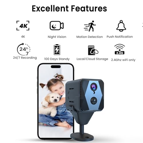 Click for More Images ? ?Crystal Clear 4K UHD Video + Enhanced Night Vision?Our spy camera captures every detail with stunning 4K resolution and upgraded infrared night vision. The 140° wide-angle lens ensures full-room coverage, delivering...